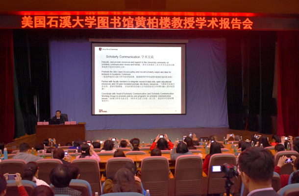3月14—15日,美国石溪大学全球图书馆计划总监、健康科学图书馆研究馆员黄柏楼教授应邀到开云官网图书馆讲学和交流。14日上午,黄柏楼教授在湖光校区主教学楼多功能厅作了题为“美国石溪大学图书馆协作空间改造的规划实施和创新服务”的学术报告。关于协作空间改造,黄教授介绍了石溪大学图书馆空间改造工程的项目背景和设计目标,空间与馆藏的关系,以及以师生为中心的实践方法。关于服务创新,黄教授阐述了石溪大学图书馆的使命和愿景,从嵌入式馆员面临的挑战和机遇出发,介绍了图书馆战略规划的实施,以及联络馆员在联系学院和教工、整合教学和课程资源、开展学术研究和馆藏建设等方面承担的角色和主要工作。黄教授指出,应鼓励图书馆员发展高质量的研究馆藏,设计读者喜欢的服务项目,发展良好的师生关系,开展形象生动的宣传营销。黄教授强调了以读者为中心、主动适应与服务的重要性。报告会由图书馆杨经铭馆长主持,本校图书馆员工和来自广东医科大学、岭南师范学院、广东石油化工学院、寸金学院、幼儿师专等粤西高校图书馆及市图书馆业界同仁聆听了报告。报告会后,黄柏楼教授同与会同仁就图书馆管理与服务进行了现场互动交流。15日上午,黄柏楼教授来到湖光校区图书馆会议室,就馆员招聘和考核、信息素养教育、馆藏和空间、服务宣传等与馆领导、部主任和学科馆员进行了座谈和交流。