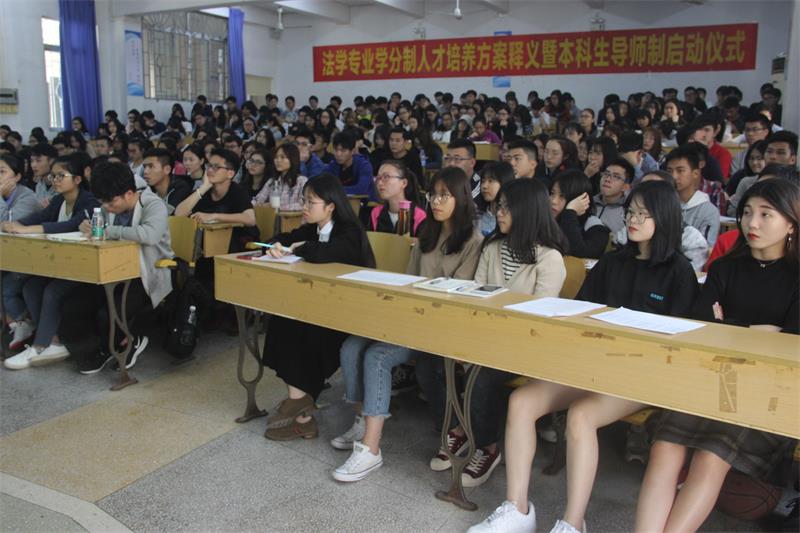 3月21日下午由法学系主任万宗瓒博士后主讲的法学学分制人才培养方案释义暨本科生导师制启动仪式于海滨校区电教楼101室举行,法学专业2017级220名同学参加。