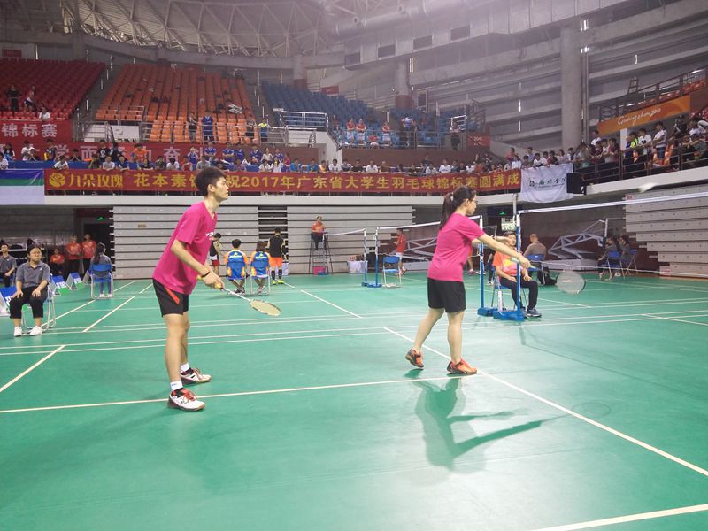2017年广东省大学生羽毛球锦标赛于11月8日--12日在广东外语外贸大学举行。来自全省82所高校代表、1024名大学生运动员在本次比赛中展开激烈的争夺。开云kaiyun登录入口羽毛球队首次参加本次比赛,代表队由领队郭炎林,教练韩海波和20名学生组成。代表队经过4天的激烈奋斗,团结协作、奋勇拼搏,发挥了较佳的竞技水平,摘取甲组混双亚军(肖雪仪、何明轩)和乙A组团体第六名以及多个项目前八名的优异成绩。