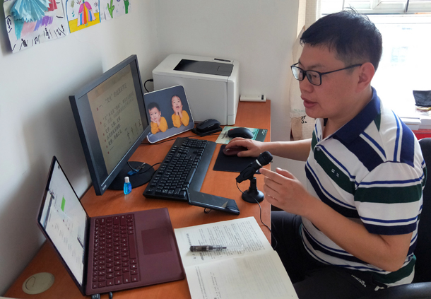 系主任董国华博士一面统筹全系工作,一面搜集网络资源,修改网课PPT,细化深化备课,参加学习网课培训,为线上教学做充分准备。按照学院规划的工作进度,董老师很早就确定所授4门课使用超星平台,并做好授课计划,提前组建好各教学班微信群,向学生发送通知和资料并探讨更为适合的授课方式。3月4日第一次演练授课,有个别学生反映存在网络延迟、画面卡顿但授课声音不受影响的现象。考虑到正式开学后网络将更为拥堵,董老师采取措施,将授课PPT发给学生预习,同时准备了腾讯会议作为辅助工具,以便网络卡顿时学生可以观看远程共享屏幕来跟上讲课进程。在测试后,学生普遍反映画面清晰,声音流畅,效果良好。试课结束,董老师将情况反馈给教务处和学习通的负责老师,问题也得到了有效的解决。