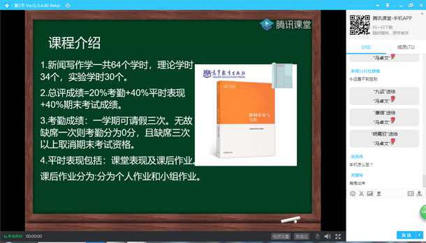 冯卓文目前担任《新闻写作学》的课程老师,《新闻写作学》是新闻学专业大一开设的专业核心基础课。为了更好地开展教学工作,结合课程属性,冯卓文已于寒假期间就对学生进行新闻写作的教学工作:连续24天的一句话新闻写作训练及每日的作业点评。而此次线上教学是冯卓文第一次采用网络直播的形式进行教学,为了做好网络课程教学的工作,保障教学质量,她首先在超星尔雅平台完善网络课程建设,与学生多次进行线上试课,最终找到了最适合教学的网络教学方式。