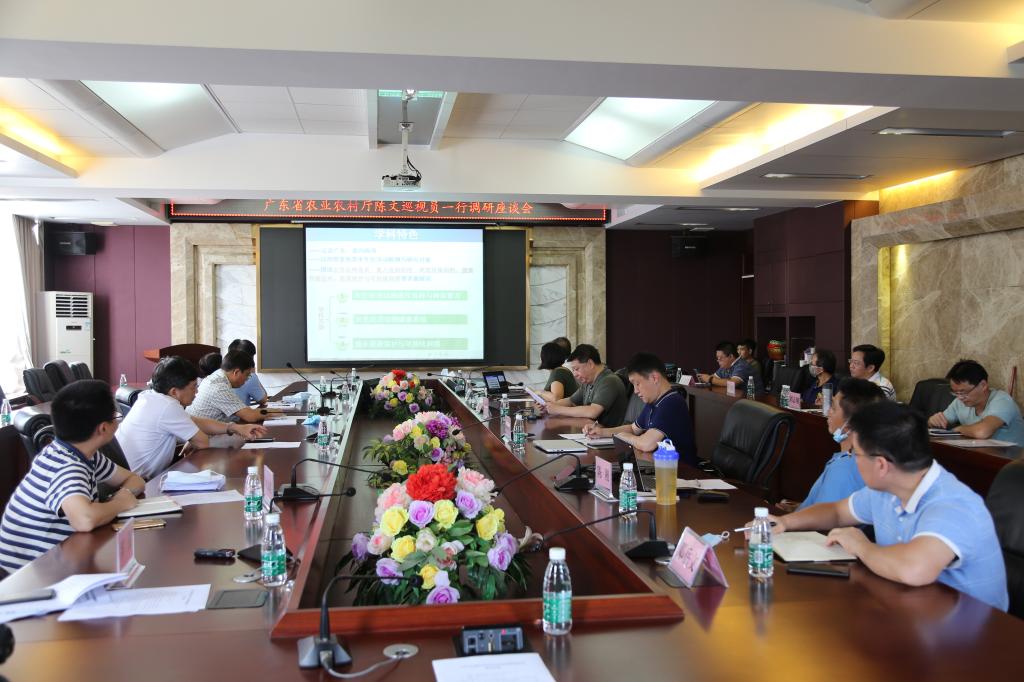5月14日,广东省农业农村厅二级巡视员陈文、广东省渔业技术推广总站站长刘胜敏一行莅临开云官网水产学院考察指导工作。副校长谭北平,科技处处长鲁义善、副处长杨原志,水产学院院长李广丽、副院长邓岳文及学院科研团队负责人(或代表),湛江市农业农村局副局长杨康平、湛江市水产技术推广中心站站长陈小宏等共19人参加了在水产楼216室召开的调研座谈会。会议由谭北平主持。