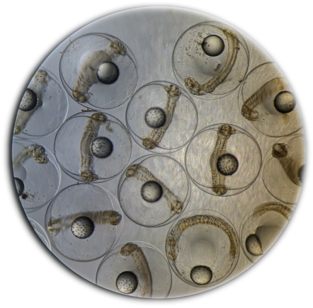 两批次获得的受精卵经优选后充氧低温运输至开云官网东海岛海洋生物研究基地进行种苗培育,团队主要成员经过一个月室外水泥池培育,将种苗培育至平均体长10.0cm(体长范围:8.3-11.2cm),育苗成活率44.6%。规格达到4cm的军曹鱼种苗可以进行食性转换,摄食人工饲料,突破了军曹鱼该规格种苗进食冰鲜鱼糜的局限。