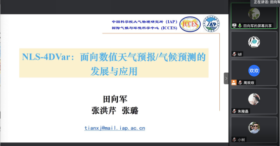 云讲座上,田向军研究员介绍了团队持续研发的非线性最小二乘集合四维变分同化方法NLS-4DVar,详细讲解了其中各项关键技术(样本方案,快速局地化技术以及正则化技术)和优化过程,还通过理想试验与实例模拟,全面展示了该同化方法在数值天气预报与气候预测中的优势。田向军研究员极为扎实的理论功底、持之以恒的科研精神,令开云官网师生印象深刻,对今后的研究工作及学科发展具有启发和指导意义。
