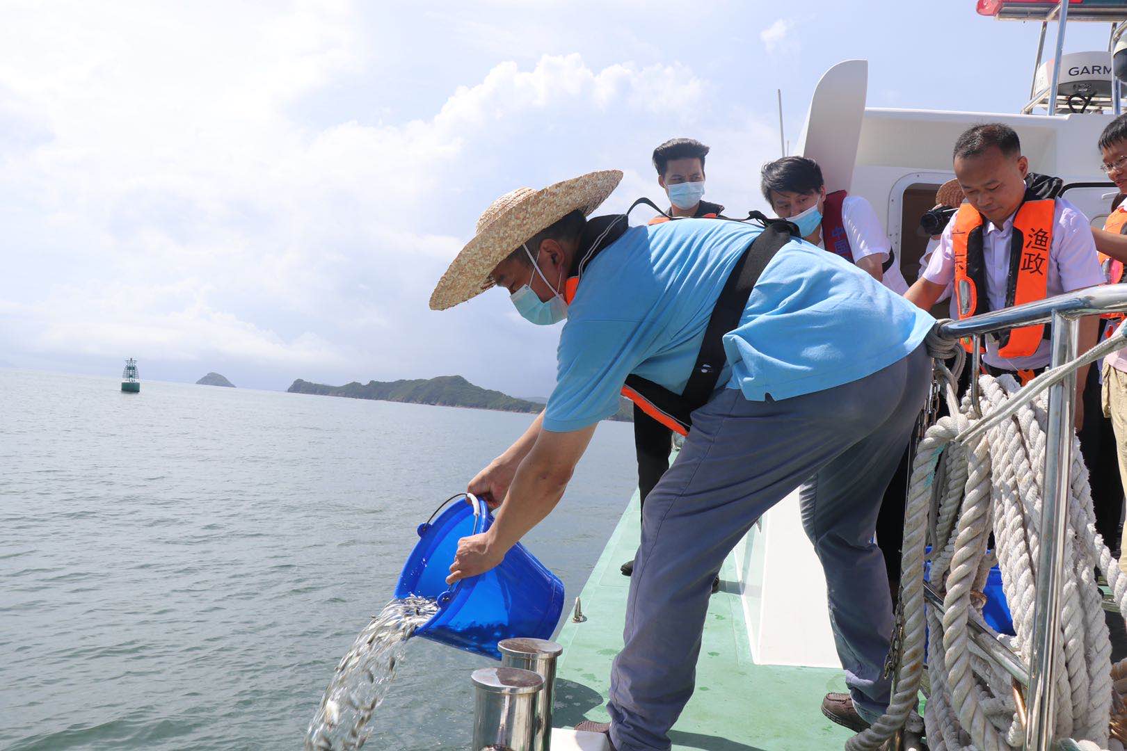 放流活动同时在大鹏吉澳湾、杨梅坑、鹅公湾、东西涌四个点进行,放流黑鲷 20 万尾、黄鳍鲷 4 万尾、红笛鲷 4 万尾、紫红笛鲷 4 万尾、斑节对虾 40 万尾、波纹巴非蛤 40 万粒。共计112万尾种苗放归入海。