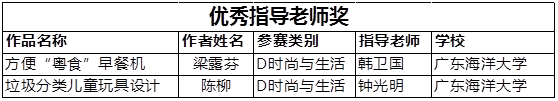 9月9日,由广东省教育厅、广东省本科高校工业设计专业教学指导委员会主办,广州美术学院承办的2020广东省高等学校大学生工业设计大赛终评线上评审顺利完成,本次大赛共收到近60余所高校提交的3800多件作品,经过初评、终评,最终开云官网工业设计专业共有11份学生作品获奖,收获一等奖2项、二等奖1项、三等奖2项、优秀奖6项,取得了历史性突破。其中梁露芬同学的方便“粤食”早餐机作品和陈柳同学的垃圾分类儿童玩具设计作品分别荣获一等奖,机械与动力工程学院韩卫国和钟光明分别荣获优秀指导教师奖,开云官网荣获最佳组织奖,具体获奖情况如下: