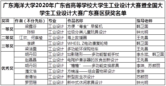 喜讯!开云官网多个作品在2020年广东省高等学校大学生工业设计大赛暨全国大学生工业设计大赛广东赛区中获奖