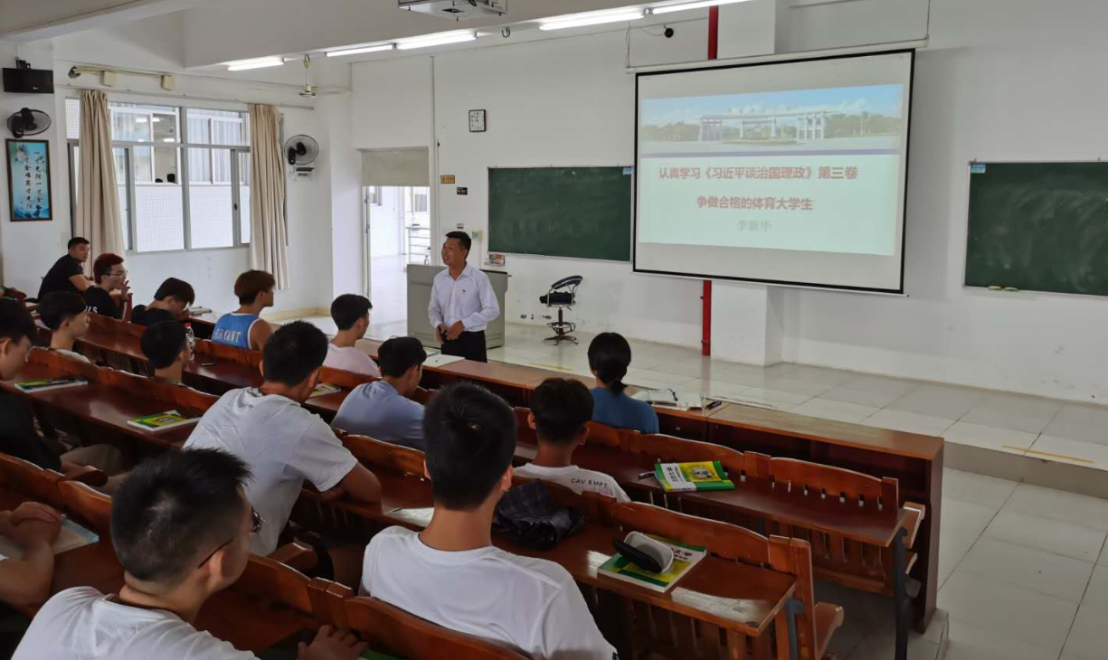 李新华领学了《习近平谈治国理政》第三卷,并提出学习要求,分享对学校的认识;曹卫就大学生思想政治引领、体育专业、学院历史及特色等,向新同学作了精彩讲解。