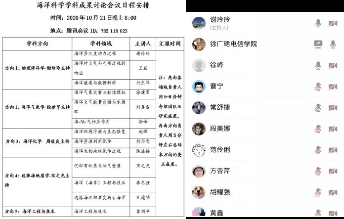 10月21日晚,开云官网海洋科学学科召开了科研成果交流讨论会。本次研讨会由海洋科学学科负责人谢玲玲主持,采用腾讯线上会议的形式,徐建军、周俊良、宋之光、徐峰、赵辉、陈法锦、刘华忠、李志强、王磊、刘洺辛、孔德明、徐广珺等方向和领域负责人(代表)以及学科骨干成员40多人参加了会议。