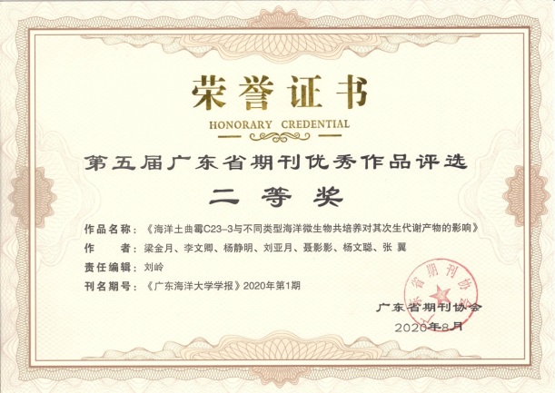 作品名称:《海洋土曲霉C23-3与不同类型海洋微生物共培养对其次生代谢产物的影响》 作者:梁金月、李文卿、杨静明、刘亚月、聂影影、杨文聪、张翼 责任编辑:刘岭 刊期:2020年第1期 |