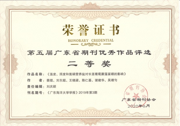 作品名称:《温度、照度和氮磷营养盐对长茎葡萄蕨藻富硒的影响》 作者:蔡煜、刘东超、王晓梁、陈仁基、谢建华、吴靖匀 责任编辑:刘庆颖 刊期:2019年第3期 |