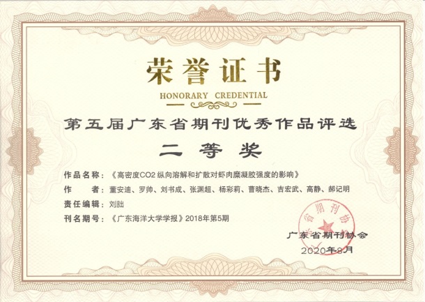 作品名称:《高密度CO2 纵向溶解和扩散对虾肉糜凝胶强度的影响》 作者:董安迪、罗帅、刘书成、张渊超、杨彩莉、曹晓杰、吉宏武、高静、郝记明 责任编辑:刘朏 刊期:2018年第5期 |