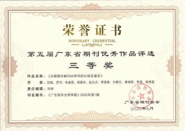 作品名称:《巨蛎属牡蛎DNA序列的比较及鉴定》 作者:彭敏、罗邦、朱威霖、杨春玲、赵永贞、李强勇、刘青云、曾地刚、李旻、陈秀荔 责任编辑:刘岭 刊期:2020年第1期 |