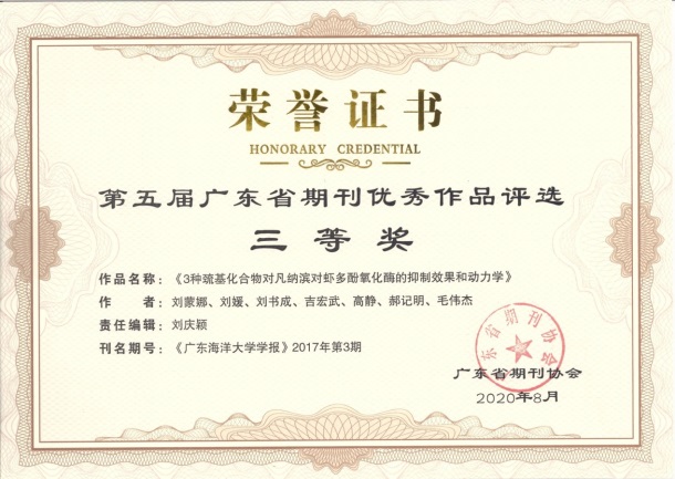 广东省第五届期刊优秀作品开云官网学报获奖名单