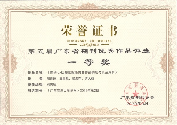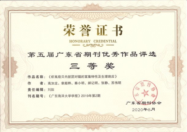 作品名称:《虾夷扇贝内脏团对镉的富集特性及生理响应》 作者:高加龙、章超桦、秦小明、郝记明、张静、苏伟明 责任编辑:刘朏 刊期:2019年第2期 |
