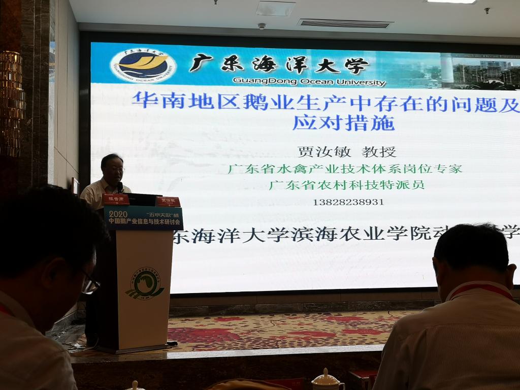 10月17日至18日,“五亭天歌杯”2020中国鹅产业信息与技术研讨会在扬州隆重召开,滨海农业学院贾汝敏教授应邀参会并作了题为“华南地区鹅业生产中存在的问题及应对措施”的学术报告。