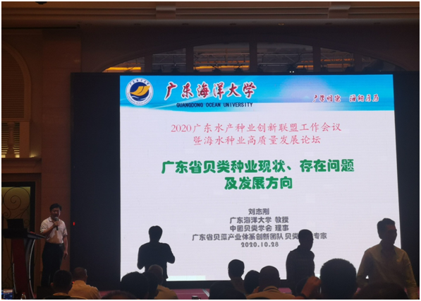10月27日至29日,广东省海水种业高质量发展论坛在惠州大亚湾举行。论坛由广东省农业农村厅、广东省科学技术协会指导,广东水产种业创新联盟、省海洋渔业试验中心、省渔业技术推广总站和广东水产学会联合主办,以“科技创新为动力,助推水产种业高质量发展”为主题,聚焦广东水产种业发展现状,为广东水产种业实现高质量发展建言献策。省农业农村厅领导、业内有关专家、企业代表130余人参加论坛。开云官网刘志刚教授受邀在会上作了“广东省贝类种业现状、存在问题及发展方向”的主题报告。