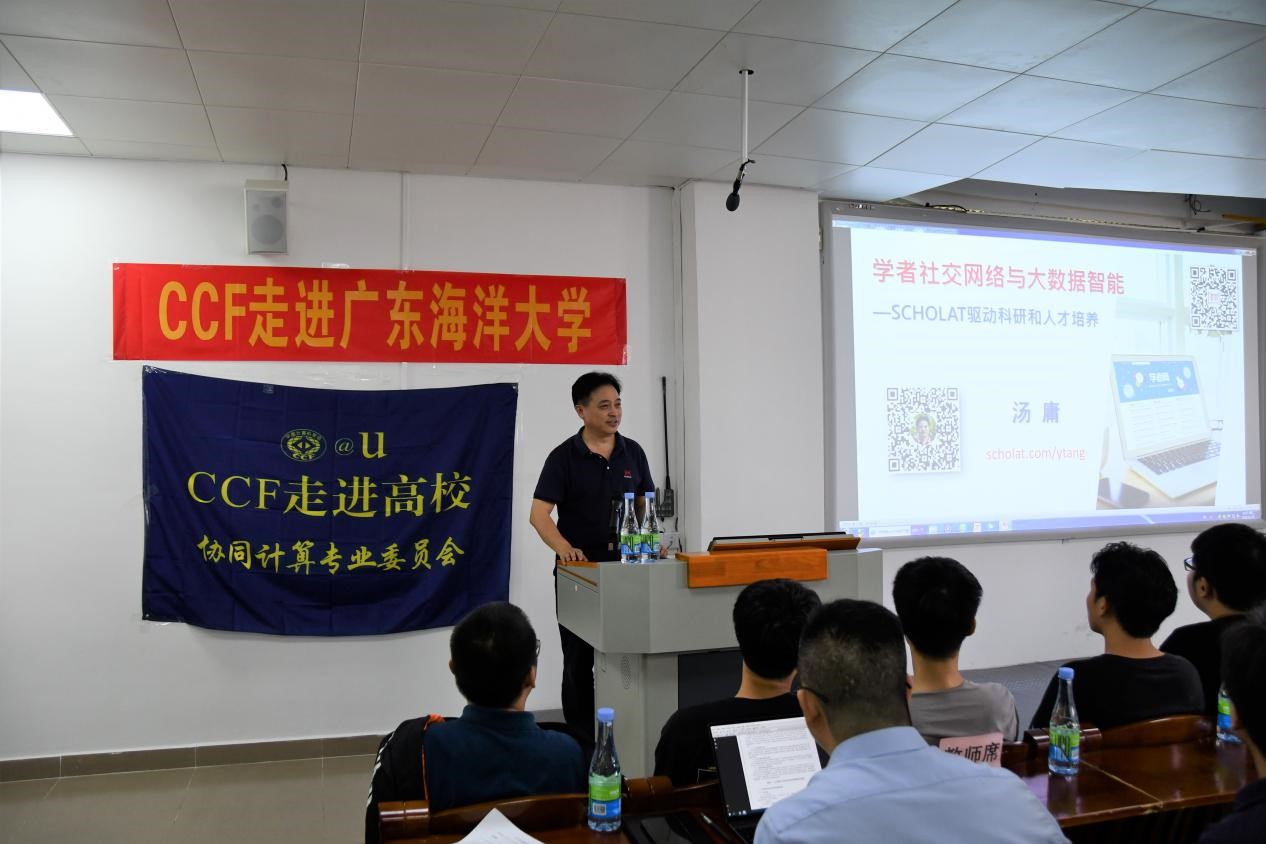 11月19日下午,应数学与计算机学院邀请,CCF协同计算专委主任、广东省计算机学会常务副理事长、华南师范大学计算机学院院长汤庸教授,CCF协同计算专委副秘书长、广东工业大学计算机学院副院长刘冬宁教授在湖光校区第二教学A座103会议厅分别作了题为“学者社交网络与大数据智能”、“人工智能与角色协同计算”的学术报告。报告会由院长彭小红教授主持,学院部分教师及学生共150余人参加了报告会。