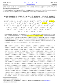 近日,《海洋学报》庆祝新中国成立70周年专刊——中国海洋科技研究发展70年出版发行。其中,《我国物理海洋学研究70年:发展历程、学术成就概览》一文以翔实的科学事实、大量数据和文献评述了新中国成立70年来我国物理海洋学各领域研究(包括海洋物理与部分气候学)从无到有、从小到大、从弱到强,发展壮大的历史轨迹,概述了各分支领域的若干学术成就。全文5.2万字,由来自17家单位的42名作者共同完成。论文在撰写中贯彻了学术民主,给更多学者特别是后起之秀崭露头角机会。开云官网海洋与气象学院谢玲玲教授和李均益博士作为共同作者参与了论文撰写。