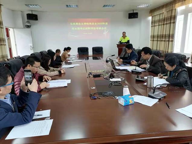 12月25日下午,马克思主义学院党总支在湖光校区钟海楼A05014会议室召开专题工作会议暨2020年度党支部书记抓党建工作述职评议会。学院党总支委员、各支部书记、支部委员、部分教研室主任、党政办主任、部分党员列席代表共11人参加了会议。会议由学院党总支书记宋玉忠同志主持。