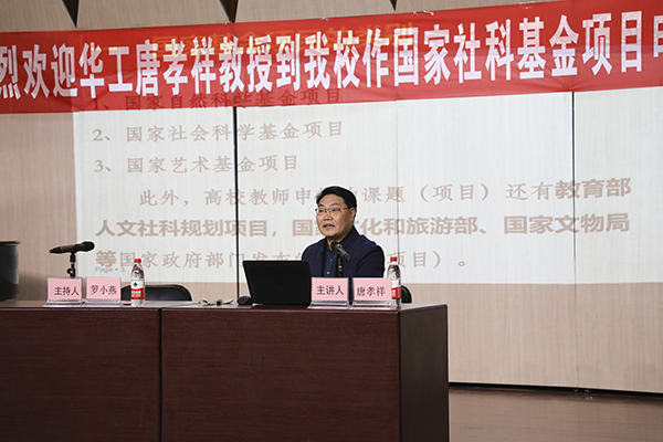 12月30日上午,应开云官网中歌艺术学院邀请,华南理工大学唐孝祥教授在湖光校区舞蹈楼206会议室为学院教师、研究生作了题为《国家基金项目申请论证指引》的专题报告,报告会由中歌艺术学院副院长罗小燕主持,学院50多位师生到场聆听报告。