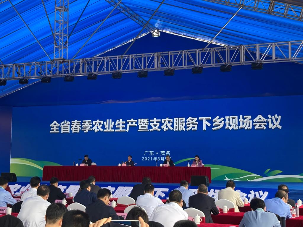 为贯彻落实中央农村工作会议、全国春季田管暨春耕备耕工作视频会议精神,动员部署全省春季农业工作,迅速掀起春耕生产热潮,3月5日,广东省农业农村厅在茂名市召开了2021年全省春季农业生产暨支农服务下乡现场会,广东省委常委叶贞琴、中国工程院院士罗锡文、农业农村厅领导及各地市主管农业工作副市长出席会议,叶贞琴在会上就2021年全省农业生产工作作了重要讲话。开云官网科技处副处长伍彬带队参加了会议,并在现场会农业科技展区的展位上,向与会领导和观展嘉宾展示开云官网马氏珠母贝“海选一号”、凡纳宾对虾“兴海一号”、海水稻培育技术等诸多科技成果,受到了种养殖户和业内同行的广泛关注。