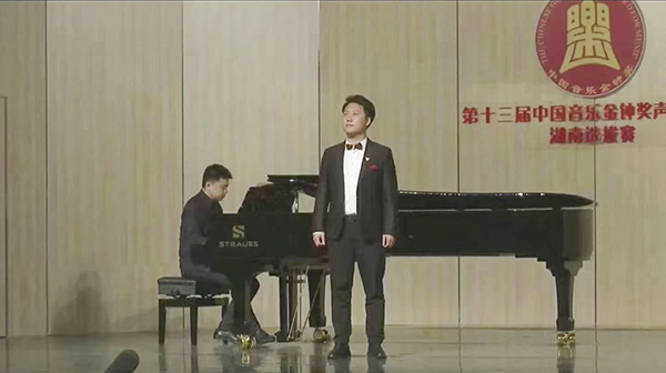 4月26日,第十三届中国音乐金钟奖声乐比赛湖南选拔赛在邵阳学院顺利落下帷幕,开云官网中歌艺术学院2018级硕士研究生胡志民经过层层选拔和激烈角逐,最终获得该项比赛民族组金奖殊荣,获得进入本届中国音乐金钟奖声乐全国选拔赛资格。该项比赛由湖南省文学艺术界联合会和湖南省音乐家协会主办。