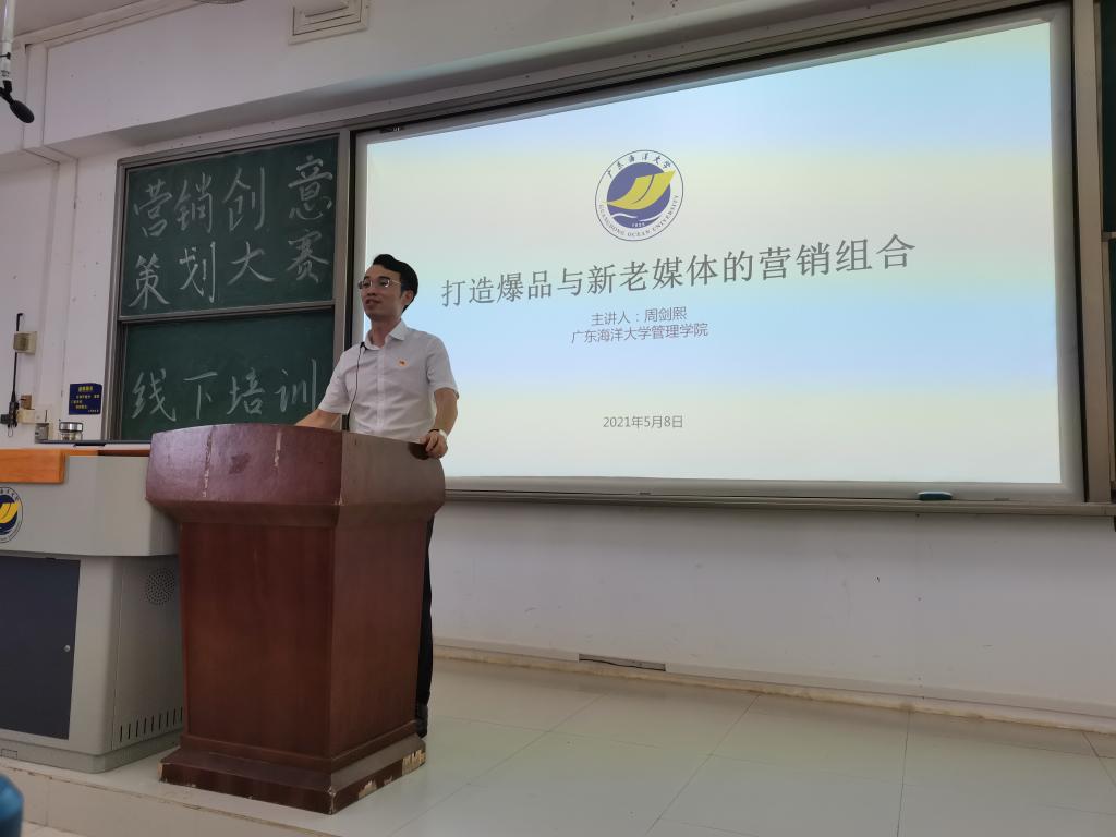 5月8日下午,由管理学院承办的学校第一届营销创意策划大赛培训会在钟海楼04024教室举行,广东恒兴股份总部行政人事中心副总经理周剑熙及公司高管代表人员应邀参加会议。管理学院副院长杜军、工商管理系主任高秀丽、教师杨菁、林青秀及本科生和研究生近200人参加了本次活动。