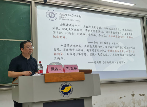 叶文举教授的报告,结合自己古典文学、秘书史、公文写作的研究经验和成果展开,从文学性的传统影响、文风改革的现实需求、继承传统文化的内在表现等多个方面,强调了古典诗词在公文写作中的重要性。在报告过程中,叶教授旁征博引,深入剖析,详细介绍了公文写作中古典诗词的作用、引用方法及引用准则,为青年学者和中文系学生、尤其是秘书学专业学子提供了宝贵的建议。