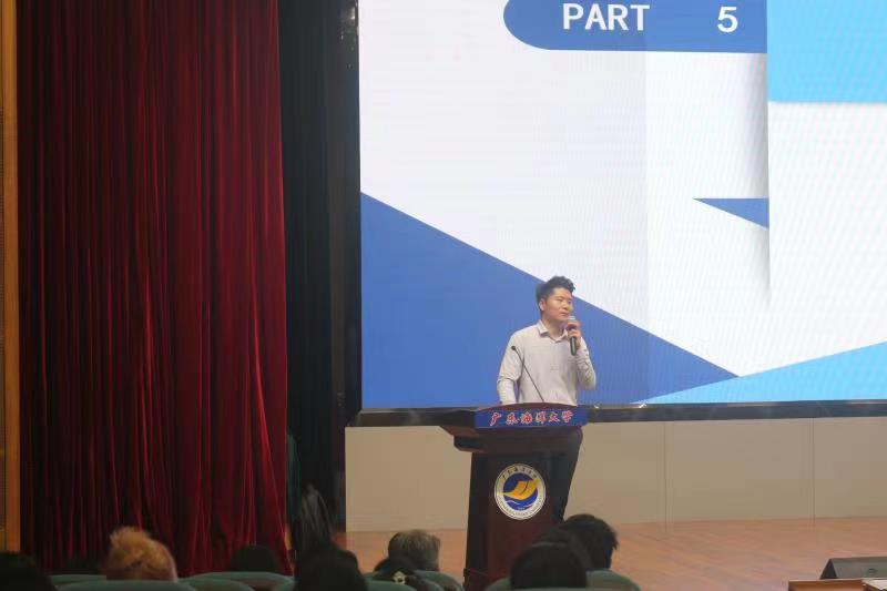 5月20日晚上7:00,在湖光校区主楼多功能厅,来自一百大牛(深圳)技术有限公司跨境电商高校就业创业指导教师李威以《“E-青春--跨境电商就业创业”》为主题做了第一场专题讲座,学院副院长安丰科博士主持,外国语学院二年级学生和英语专业三年级商务英语方向学生共计约500人参加本次讲座。
