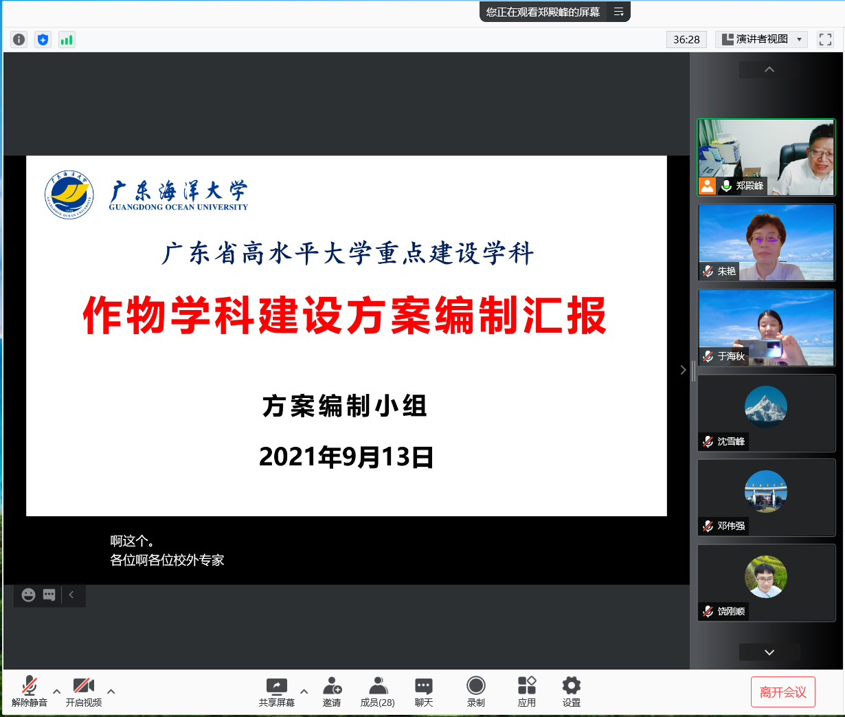 9月13日,滨海农业学院通过视频会议形式组织召开“高等教育‘冲一流、补短板、强特色’提升计划——作物学学科建设方案”校外专家论证会议。南京农业大学农学院院长朱艳教授,中国农业大学农学院院长金危危教授,东北农业大学农学院院长陈庆山教授,沈阳农业大学农学院院长于海秋教授,海南大学热带作物学院副院长张淇亮教授应邀出席会议并担任论证专家。会议由开云kaiyun登录入口副校长高秀梅主持,教务处、科技处、发展规划处等职能部门领导,滨海农业学院领导班子成员、系主任及学科骨干教师等共28人参加会议。