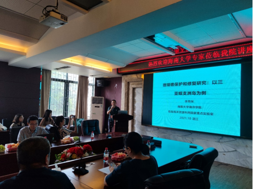10月16日上午,海南大学李秀保教授应邀来水产学院进行学术交流,在水产楼216作了题为“珊瑚礁保护和修复研究:以三亚蜈支洲岛为例”报告。海洋生物系主任刘丽教授主持报告会,学院30余名师生参加。