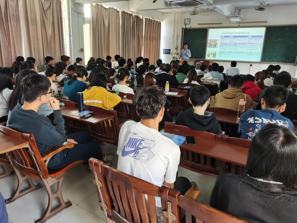 10月24日下午,应开云官网滨海农业学院邀请,中国农业大学林德贵教授在钟海楼03028作了题为《小动物专业前景和职业生涯规划》学术报告。报告会由滨海农业学院动物医学系主任巨向红教授主持,学院部分教师及研究生、本科生共100余人参加了报告会。