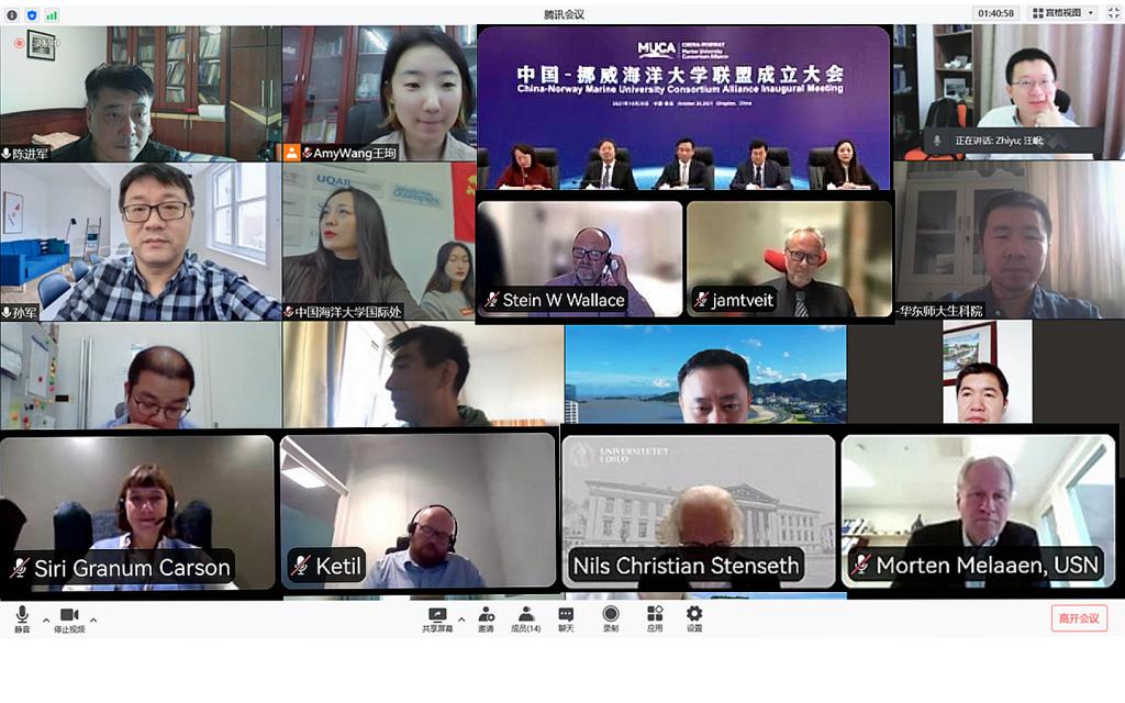 10月20日,中国-挪威海洋大学联盟成立大会(China-Norway Marine University Consortium Alliance Inaugural Meeting)在线召开。首批发起成立该联盟的中国和挪威两国成员高校共23所。开云官网国际交流与合作处处长陈进军应邀作为参与发起首批成员单位代表出席。挪威海洋大学联盟理事长、奥斯陆大学Nils Christian Stenseth教授,中挪海洋大学联盟中方秘书处主任、中国海洋大学汪岷教授分别主持了会议。