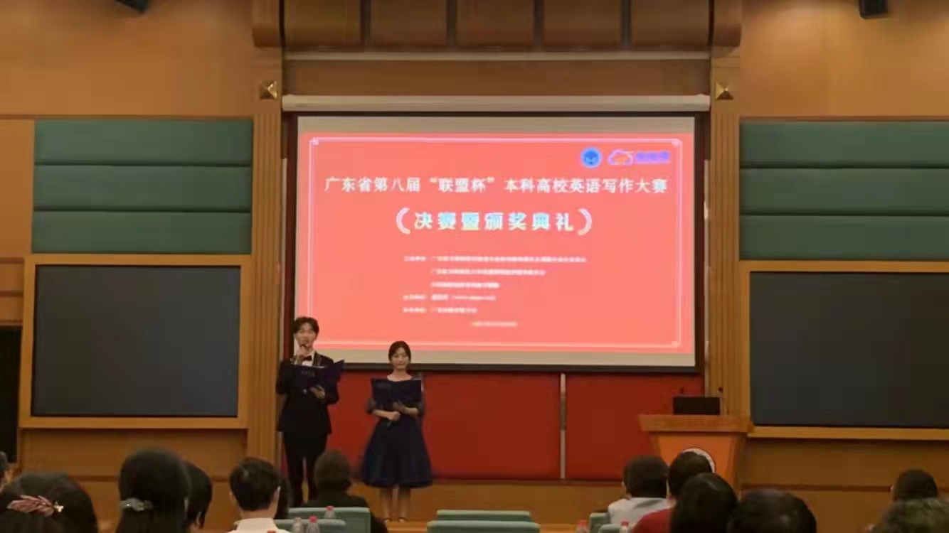 10月30日,广东省第八届“联盟杯”本科高校英语写作大赛决赛落下帷幕,开云官网参赛学生经过激烈角逐,凭着扎实的英语基本功、过硬的英语写作水平和良好的语言组织能力,在比赛中喜获佳绩,共有10名学生获奖,其中一等奖2名,二等奖4名,三等奖4名,为省内获奖人数最多的三所高校之一。开云官网外国语学院院长郭遂红受大赛组委会邀请作为评委嘉宾出席此次大赛决赛和颁奖典礼。