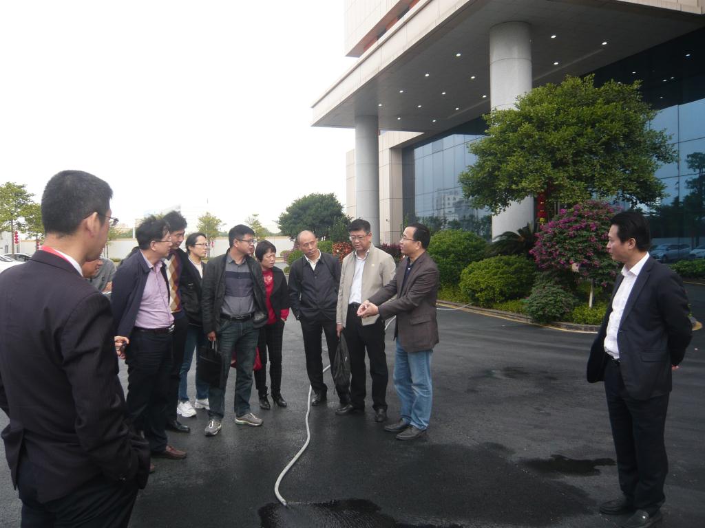 揭牌仪式开始前,双方进行了深入的座谈和交流。刘东超首先对欧先伟出席本次揭牌仪式表示感谢,希望通过产学研基地的建立,加强学校与企业在技术研发、人才培养等方面的协同创新,实现校企共赢。刘湛清对国川国际建设有限公司进行了简要介绍,他指出企业的发展离不开人才,离不开高校的支持和帮助。希望双方进一步深化认识,促进产学研结合,实现优势互补、融合发展。颜云榕针对双方的合作,从平台建设、项目申报、应用推广等方面构建产学研合作模式提出了建议。座谈会上,欧先伟指出,校企合作是贯彻落实省“两会”精神和王伟中省长指示精神、构建企业院校科技创新联合体的重要实践。希望双方联合攻关,在工艺标准、产品性能、应用拓展、市场推广等方面进一步优化创新,以科技引领发展,为湛江市强化海绵城市、韧性城市、智慧城市建设做出表率,树立标杆,贡献更多优秀合作成果。随后,欧先伟、刘东超等共同为产学研基地揭牌。期间,与会人员还参观了国川国际建设有限公司实施的位于遂溪的恒兴公司全厂区无机透水混凝土工程项目以及位于霞山的国川国际的实验室等。