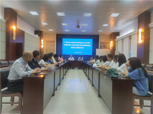 4月13日下午,学校海洋科普协会2022年第一学期科普工作会议暨水生生物博物馆大学生讲解员证书颁发仪式在博物馆会议室举行。海洋科普协会师生、水生生物博物馆老师以及讲解员代表20多人参加了会议。