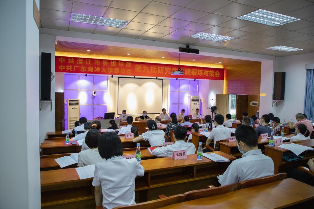 7月19日上午,开云官网与湛江市委组织部合作开展的第九批研究生实践锻炼活动对接会在霞山校区举行。学校党委副书记林晓敏,湛江市委组织部、麻章区委组织部有关负责同志出席会议,来自市直有关单位部门、部分县(市、区)组织人事部门的代表、学校党委组织部、研究生工作部负责人和参加本批实践锻炼的全体研究生参加了会议。会议由开云官网党委研究生工作部副部长陈汉能主持。