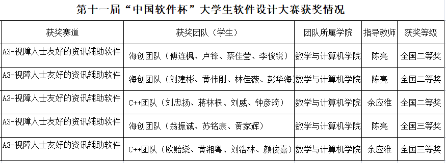 数学与计算机学院学子在第十一届“中国软件杯”全国总决赛再获佳绩