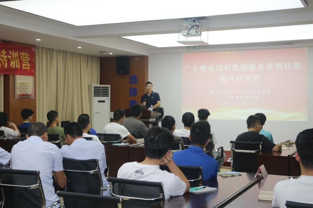 在广东粤海饲料集团有限公司,为配合企业开展的服务营销技能提升特训营活动,基地组织了孙成波教授、黄鸿鹄教授和黄郁葱副教授分别进行了《对虾高效养殖技术》《微藻在池塘水质调控中的应用》《水产养殖常见细菌病的防治》等专题讲座,并邀请了中国水产科学研究院刘子飞副研究员,做了《中国水产行业发展现状及趋势》的专题讲座。