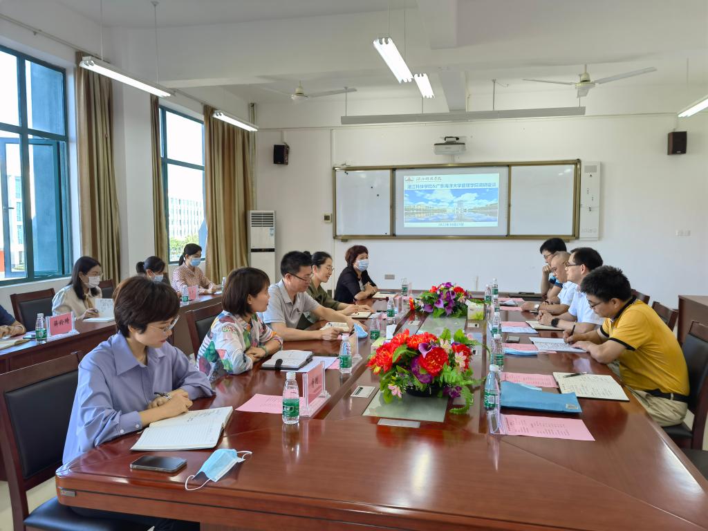 10月27日,管理学院党委书记李育芳、副院长(主持行政工作)杜军及学院党政办公室主任、系主任一行6人到湛江科技学院进行调研。湛江科技学院管理学院院长刘晓丽、党总支书记唐剑峰、副院长肖荆,会计学院院长韩冰,建筑工程学院院长谢秋兰及相关学院系主任参加了座谈会。