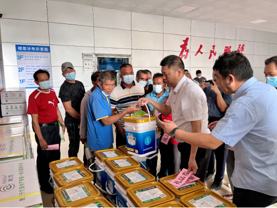 会后,科技特派员团队还携手渔仁堂生物科技(湛江)有限公司、江门市新健饲料有限公司、湛江海思特水产科技有限公司等产学研合作企业,向养殖户赠送了一批水产养殖动保产品、饲料与苗种等。湛江市水产技术推广中心站也现场派发了《水产养殖用药明白纸》宣传公告,指导养殖户科学用药、绿色养殖。