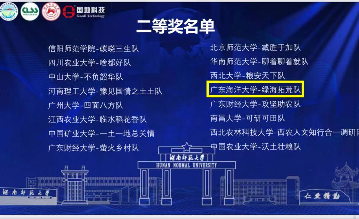 11月26日,“国地杯”第四届全国大学生土地国情调查大赛决赛在湖南长沙湖南师范大学举办。在周飞、马智宇老师的指导下,由管理学院土地资源管理专业2020级本科生刘耀楷、王友情、张靖琳、冯凯琳、陈淑君五位同学组成的团队凭《雷州半岛耕地撂荒的空间识别、产能损失核算及整治时序评价——以遂溪县为例》调查报告,荣获全国二等奖。