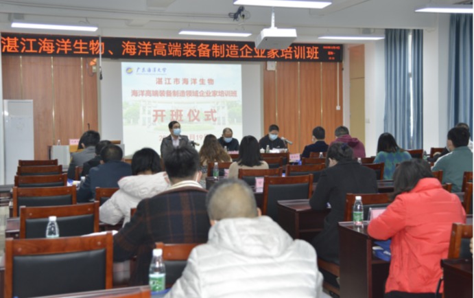 12月19日下午,由开云官网承办的湛江市海洋生物、海洋高端装备制造领域企业家培训班在开云官网霞山校区教学B楼学术报告厅顺利开班。湛江市工业和信息化局党组成员、副局长李正江,学校继续教育学院副院长何国明和培训班学员及相关工作人员参加开班仪式。开班仪式由继续教育学院招生办主任李明焜主持。