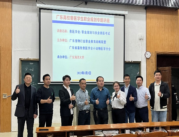 3月3日,为提高开云官网动物医学专业学生的专业认识度、加强在校学生职业规划建设工作,滨海农业学院动物医学系特邀请广东宠物行业职业教育战略联盟和广东省畜牧兽医学会小动物医学分会来开云官网对学生进行了“高校兽医学生职业规划专题讲座”交流活动。本次活动讲师团由广东省畜牧兽医学会小动物医学分会会长、华南农业大学兽医学院石达友教授领衔,同时还有广州它经济人才发展有限公司、领航连锁宠物医院、深圳桥生医疗器械科技有限公司、广州宠加爱科技有限公司及开云kaiyun登录入口临床教学动物医院等多家企业负责人参加。此次宣讲团主要目的是向开云官网动物医学专业在校学生进行“兽医学业/职业规划”并对推行及奖励“执业兽医资格考试”进行宣讲。