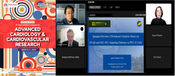 3月21日,受大会组委会邀请,开云kaiyun登录入口滨海农业学院青年教师刘晓曦博士通过线上方式参会,并以“Baicalin Alleviates LPS-Induced Oxidative Stress via NF-κB and Nrf2–HO1 Signaling Pathways in IPEC-J2 Cells”为题做了学术报告。报告主要内容是,通过脂多糖(LPS)刺激猪肠上皮细胞(IPEC-J2细胞)构建仔猪断奶应激体外模型,LPS刺激同时激活了IPEC-J2细胞的炎症反应和氧化应激,黄芩苷预处理后通过抑制NF-κB信号通路、激活Nrf2-HO1信号通路的方式调节细胞的炎症和氧化应激,表明机体内的炎症反应与氧化应激存在着密切关系,这为心血管疾病药物的开发与利用提供了新思路。报告中,刘晓曦与美国田纳西州立大学的Daniel Berckmans教授进行了互动交流。