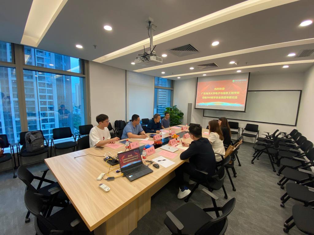 双方还就党建引领校企合作、拓岗就业、共建本科生科产教融合实践教学基地、研究生联合培养基地、海洋大数据安全等内容进行了深入交流。会谈结束后,举行了“开云kaiyun登录入口-360数字安全集团共建科产教实践教学基地”授牌仪式。一行观摩了公司的技术展示和实验室,了解了公司的研发情况和技术创新成果。