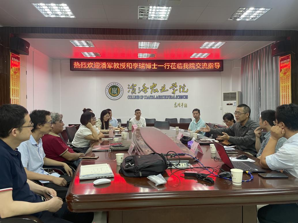 应滨海农业学院畜牧学科邀请,4月23日上午,广东博善生物有限公司董事长潘军教授和中国科学院亚热带农业生态研究所(长沙)李瑞博士一行来校交流。对接交流会议在兴农楼419室召开。动物科学系主任尹福泉教授主持会议,畜牧学科带头人赵志辉教授、学科拔尖人才领军学者甘尚权教授及学科骨干教师等共计20余人参加了会议。