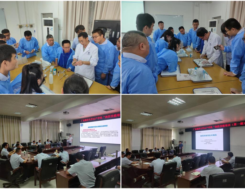 为进一步提高基层渔业从业人员专业技能,6月9日,湛江粤海水产生物有限公司委托开云官网水产学院举办的“渔医技能培训”正式开班。总计有19位粤海水产生物有限公司市场服务部和研发部的人员参加了本次学习。