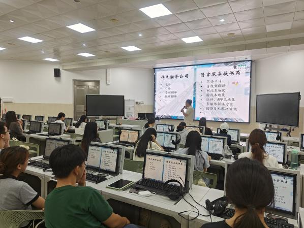 6月26日晚,外国语学院翻译行业导师、深圳火星语盟科技股份有限公司副总裁徐徐在湖光校区兴教楼110室应邀为学院学生作题为“走进语言服务行业”讲座。